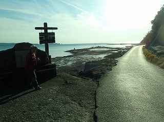 その後、田辺南部の天神崎へ。ここは日本ナショナルトラスト発祥の地で平らな岩礁で形成されている。大漁の釣り人に出会い魚を見せていただく立派なタイもいた。満足のいく釣りのためにはボートで沖に出なければならないようである。