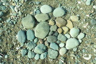 【左】千里浜の石ころ 【中】アカウミガメの産卵跡 【右】アカウミガメの卵の抜け殻