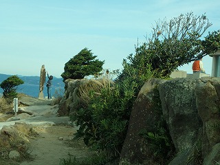 【左】天神崎の碑から見た夕日 【右】天神崎の丸山付近