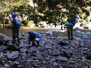 【左】谷川で岩石観察 【右】棚山高原キャンプ跡