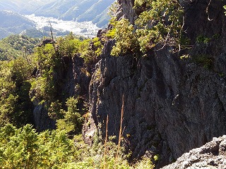 【左】瀬戸岩からのながめ 【中】瀬尾岩の松脂岩 【右】ヒキガエル