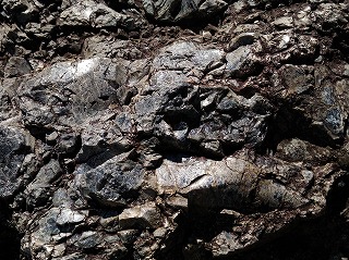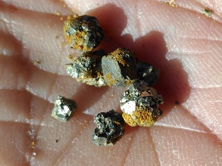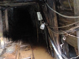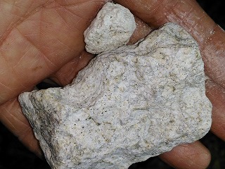 【左】黄鉄鉱? 【中】鉱山入口 【右】セリサイトを含む岩石