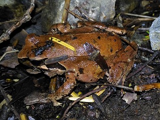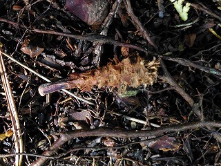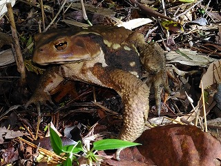 【左】エビフライ(松ぼっくりをリスが食べた痕) 【中】タゴガエル? 【右】ヒキガエル
