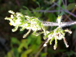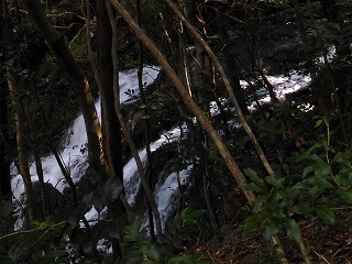 【左】林の中の滝(棚山高原、登山道) 【中】車のフロントに落ちてきたアカシでの種子 【右】栗代鉱山の残さい
