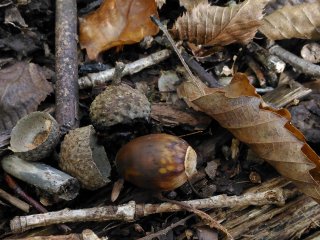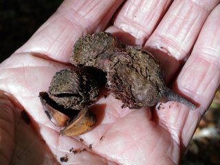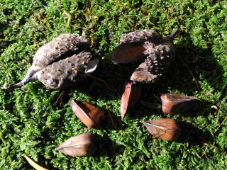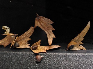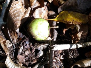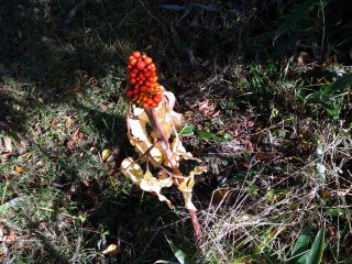 【左】テンナンショウの仲間 【中】面の木園地 【右】ブナの実(昨年の物?)