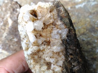 【左】宿にヒメヤママユが訪問に来ました 【中】設楽町川向で水晶観察 【右】水晶になりかけた岩石