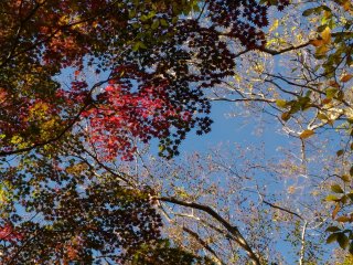 【左】ミズナラ 【中】面の木の紅葉 【右】アイシメジ