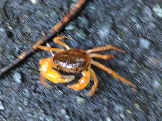 【左】スズカアザミ? 【中】サワガニ 【右】谷川で見られた転石