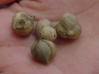 【右】ナンキンハゼの種子を拾ってくれました。風で早く落ちたみたいです。この中に白い蝋を被った種があります。
