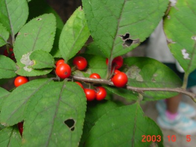 【左】ウメモドキです。雄株と雌株が別です。知多半島にもたくさんありましたが、雌株が盗掘に合い絶滅寸前です。