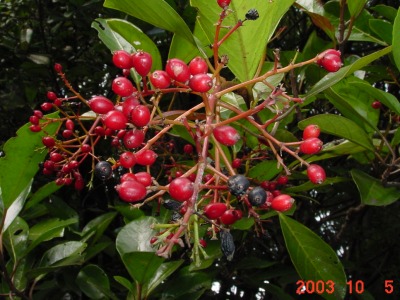 【左】 サンゴジュの果実です。意外といいおやつになり講評でした。