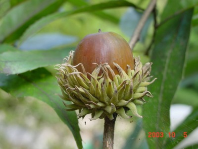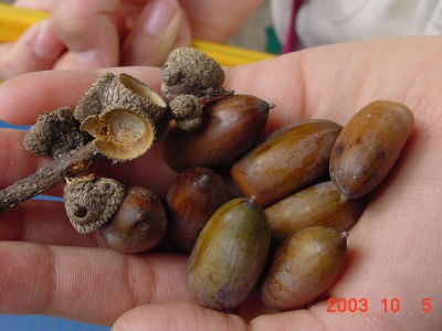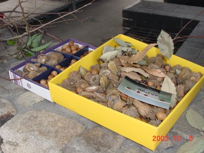 【右】マテバシイが落ちていました。殻斗(帽子をカクトといいます)もとっておきの工作材料になります。