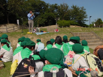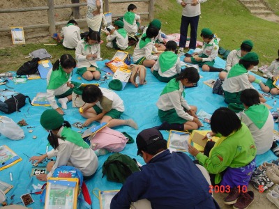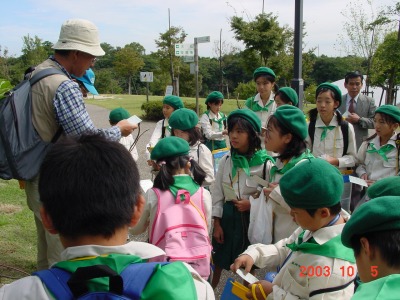 みどりの少年団は、28年前の昭和50年に「緑とのふれあいをとおして緑に親しみ、緑を守り育てる心を養うと同時にその活動を通じて、緑化思想の高揚と正しい緑の知識を身につけるとともに広く自然を愛し、そして自らの社会を愛する豊かな人間に育つこと」を日的に設立されました。組織は全国にあり、現在の団員総数は約33万人です。子供の人口は年々減っていますが、みどりの少年団は年々増加しているとのことです。
