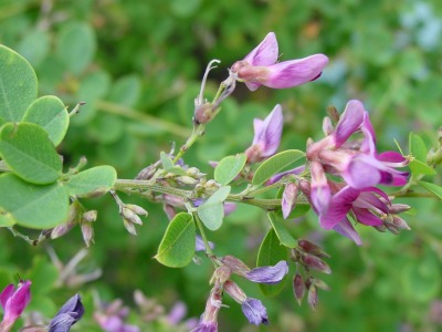 【左】秋の七草のハギです。ハギは野原の痩せ地に生える植物です。