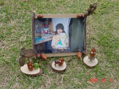 【右】午後の作品製作の見本です。知多自然観察会会員の作品です。仲間でも良いできばえに感心します