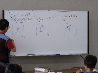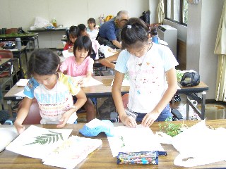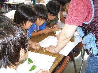 【右】標本の根元の方から少しずつていねいに貼り付けます。