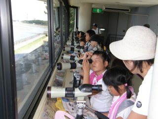 夏には身近な鳥の数が少なくなり、しかも暑い季節ですので快適なバードウオッチングできません。それでも比較的野鳥がたくさん観察でき、しかも快適に行うことが出来る場所があります。施設の中に望遠鏡がたくさん備えられていて、しかも空調が入っている名古屋野鳥館です。ここの施設の前は庄内川の大きな干潟が広がりシギやチドリなどの水鳥がたくさん訪れます。話題となった藤前干潟は小さな堤防を隔てて隣にあります。両方の干潟にはすでに子育てが終わったシギ、チドリの一部がやってきていました。また、隣にある稲永ビジターセンターで自然の大切さを学ぶことが出来ました。