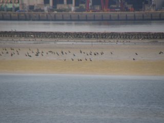 【中】ビジターセンターから見た庄内川干潟と藤前干潟。
