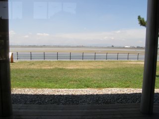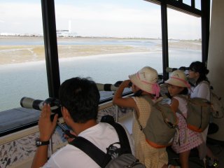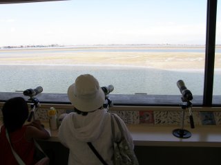 【右】】ビジターセンターから見た庄内川干潟と藤前干潟。広大です。