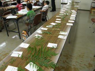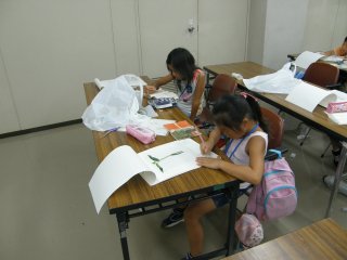 公民館の周りの空き地や花壇の中に生えている雑草で花をつけている植物を採集しました。公民館に持ち帰り台紙に表紙の補強財のブッカーで空気が入らないように貼り付けました。植物の名前と特徴を台紙に記入しました。最後に表紙を作成し、紐で綴じました。