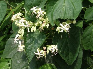【左】クサギの花。匂いも嗅ぎました。 【右】セスジスズメでしょうか。