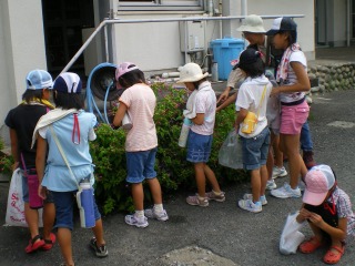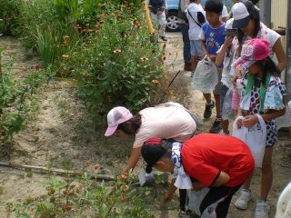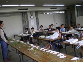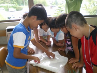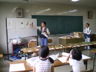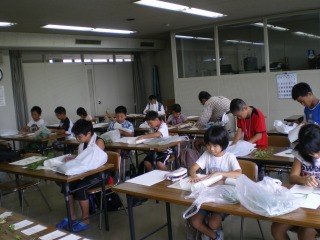 夏休み子供教室は、阿久比中央公民館の呼びかけで、阿久比町内の小学生の内、3年生から6年生の児童の希望者が自然体験などを実施しています。本日は「身近な雑草で標本を作ろう」というテ−マで子供教室を実施しました。まず、公民館の周りの空き地や花壇の中に生えている雑草で花をつけている植物を採集しました。公民館に持ち帰り台紙に表紙の補強財のブッカーで空気が入らないように貼り付けました。植物の名前と特徴を台紙に記入しました。最後に表紙を作成し、紐で綴じました。
