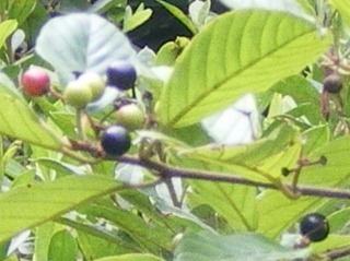 【右】イソノキの果実は緑⇒赤⇒黒と変わります。