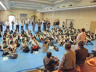 【左】開会式 【右】元気良く、自然観察に出発