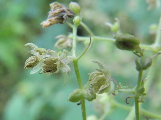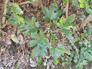 【左】カナムグラの雄花 【中】カナムグラの雌花 【右】ヤツデ(八手)の葉は幾つに分かれている