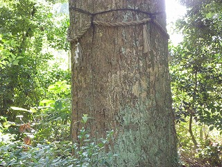 【左】オオワライタケの味は苦く有毒で幻覚作用起こします。 【中】この鳥居をくぐると祟(たた)りがあります 【右】一部、ヒノキが植林されていました