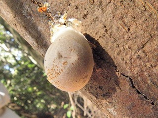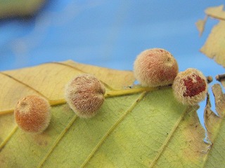 【左】ヒトリガの仲間? 【中】オオカマキリの卵塊 【右】ナラハウラマルタマフシ の虫こぶ?