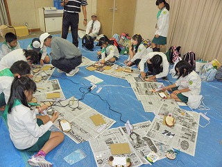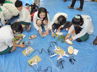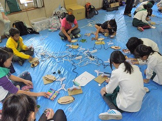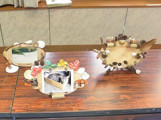 【左】【中】作品作りに取り組んでいます 【右】作品発表、みんなご機嫌でした。