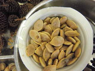 【左】クヌギ 【中】カボヤ 【右】マツボックリ