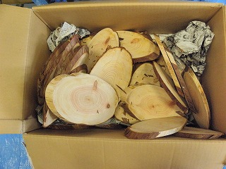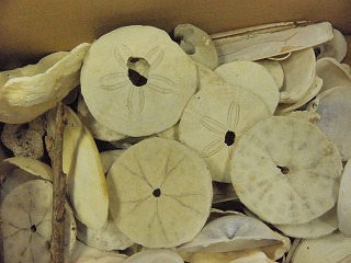 【左】貝 【中】ハスノハカシパン 【右】ヒノキのスライス