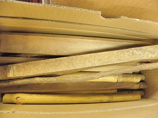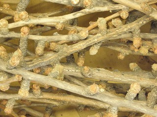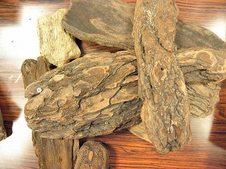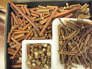 【左】マツの樹皮 【中】イチョウの枝 【右】枝