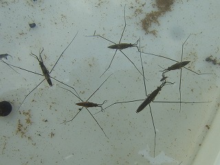 川の時⇒アオスジアゲハ、シオカラトンボ、アカムシ(ユスリカの幼虫)、コカゲロウ、ミズムシ、アメンボウ、マツモムシ、ハイイロゲンゴロウ、ヒメガムシ、ヤゴ(シオカラトンボ)、トビゲラの巣、