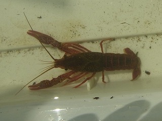 【左】ハイイロゲンゴロウ 【中】アメンボ 【右】アメリカザリガニ(外来)