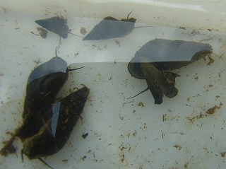 【左】ウマビル? 【中】カワニナ 【右】シジミ