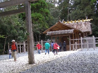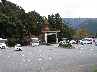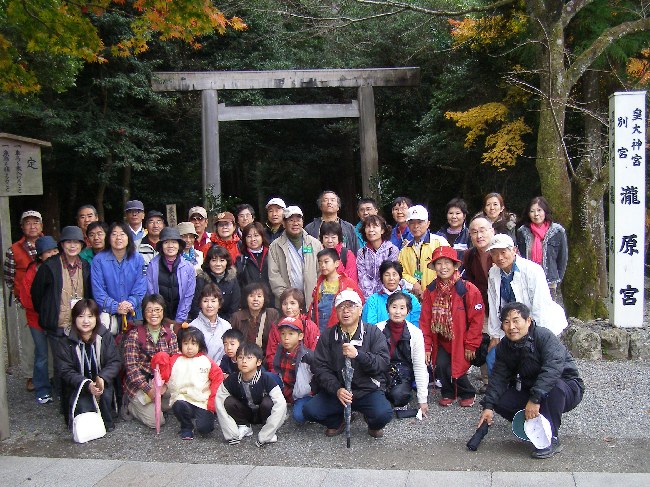【左】滝原神社境内の入口でポーズ。