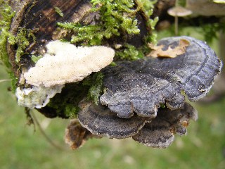 【右】ハカワラタケ(白)、カワラタケ(黒)