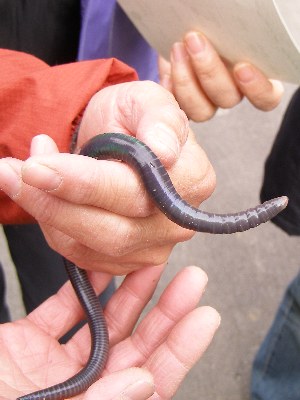 【中】シーボルトミミズの仲間に触っています。