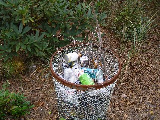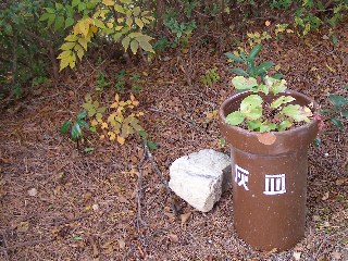 【右】森の近くに灰皿があり、土管の中から木の芽が出ていました。これも置かない方がいいようです。
