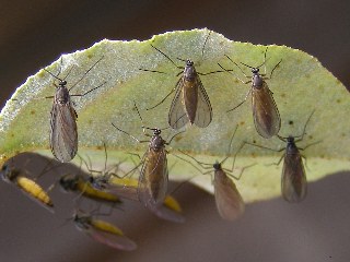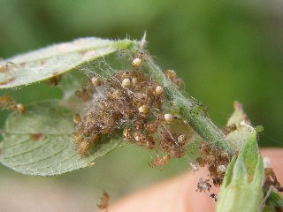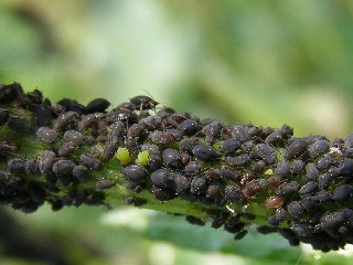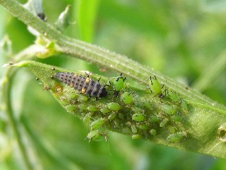 【中】エンドウヒゲナガアブラムシの幼虫が食べているのはエンドウヒゲナガアブラムシでしょうか。