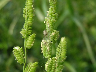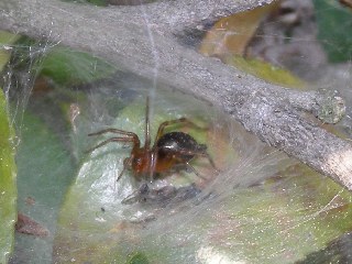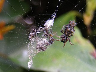 【左】垣根にたくさん巣を作っていたクサグモ。