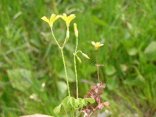 スズメノエンドウ、カスマグサ、カラスノエンドウ、ニワゼキショウ、コマツヨイグサ、オッタチカタバミ(左)とカタバミ、ヒルザキツキミソウ、カズノコグサ、ハハコグサ、ハナイバナ、トキワハゼ、スカシタゴボウ、ズミムギ、チガヤ、ナガミヒナゲシ 、シロバナタンポポ、ケキツネノボタン、トウバナ、アメリカフウロ