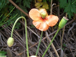 【左】地中海原産のナガミヒナゲシ。左から蕾、花、果実。