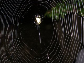 【左】クモさんがきれいに網を作りました。  【右】シロスジカミキリのプロポーズでしょうか。