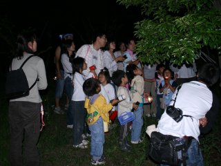 子育てグル−プ「ハグ」の皆さんがヘイケボタルの観察会に集まりました。集合時間が早く暗くなるまでに時間があったのでホタルについてお話をしました。「ヘイケボタルを見たことある人は手を上げてください」と集まった人に聞きました。子供たちはゼロでした。大人の方の一人が手を上げています。「いつどこで見ましたか」と聞きました。すると「子供のころ見ました」と答えました。それだけホタルが見られる場所が少ないということ。ほたるを見る気がないということでしょうか。一方、ホタルを養殖してホタルを増やそうと努力しホタル鑑賞のイベントやっているところもあります。ホタルのことを考えると養殖したものを自然界に放しても生活し子育ては出来ません。一代で終わりです。ホタルが生活できる自然環境がないと無理です。