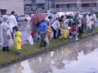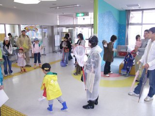 【左】新メンバーが集まってきました。 【右】カラフルな雨合羽を着ています。