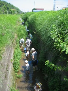 子供たちの声が響き、思い思いにタモを片手に川の上下に、生き物との出会いを求めて散りました。